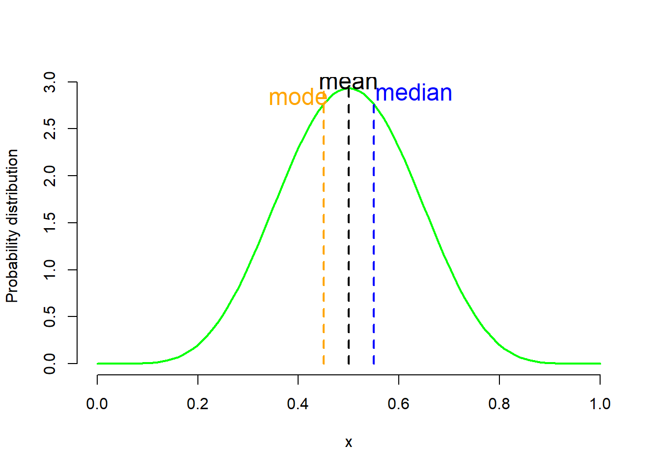 If the distribution is symmetric (mean=median=mode) (Figure 2.6 b), then in general the mean is the better summary statistic (see also Chapter 3).