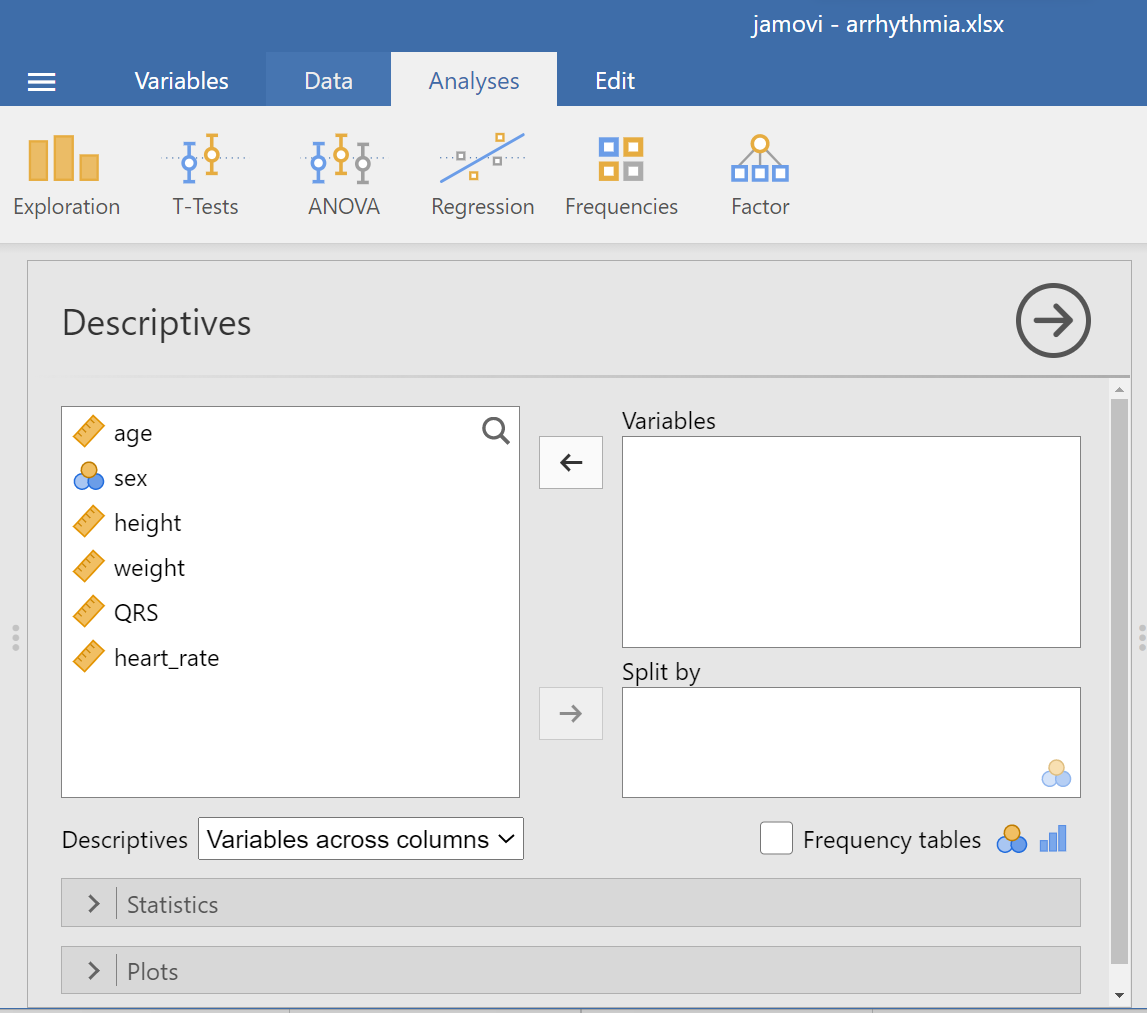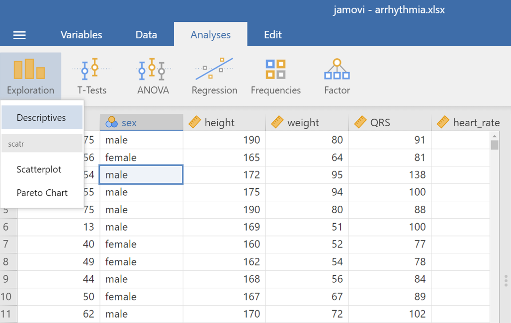 In this Lab, we will use the data from arrhythmia dataset that we have already downloaded in our PC. (Note: This starts by assuming we know how to get data into Jamovi).