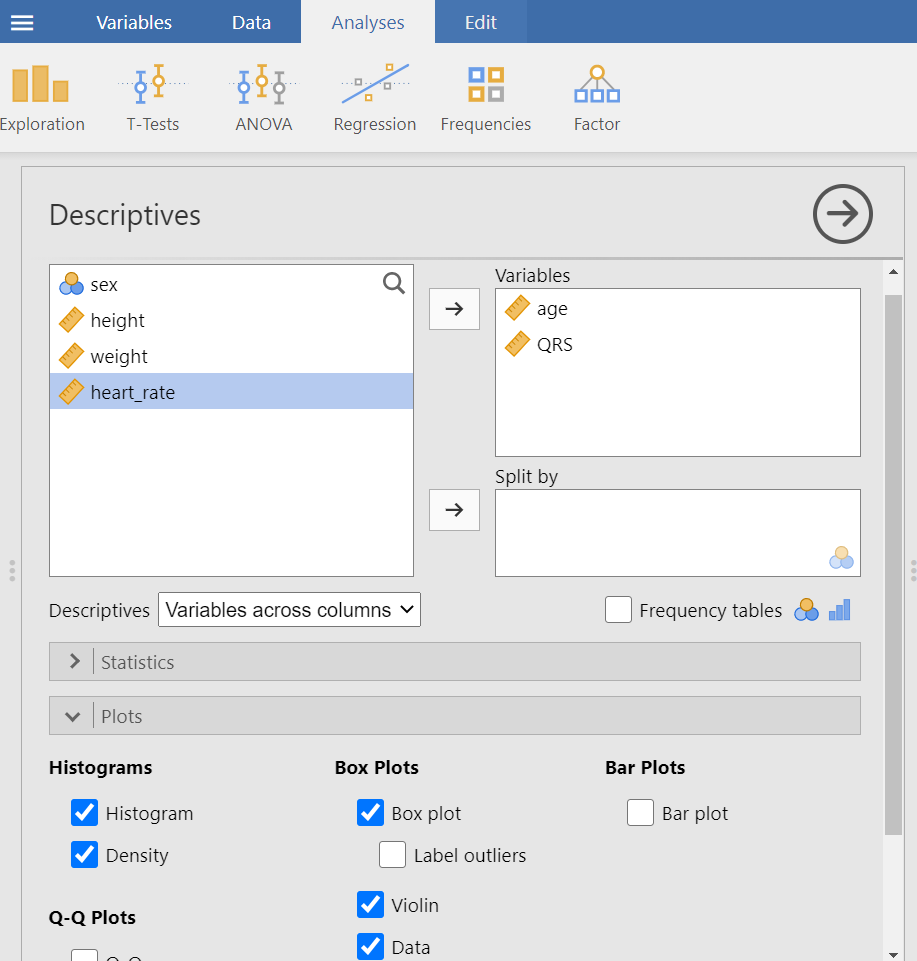 Figure 12.6: Drag and drop the age and QRS to Variables pane.