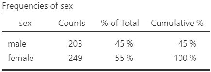 Figure 12.3: Frequency distribution table of sex