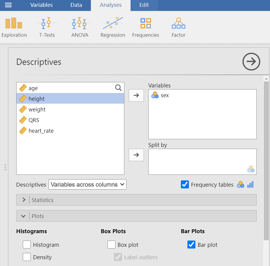 To generate a basic descriptive plot navigate to the Plots section and check the Bar Plot, as shown below (Figure 12.4):