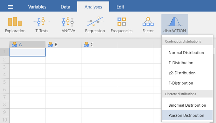 flowchart LR A(Analyses) -.-> B(distrACTION) -.-> C(Poisson Distribution)