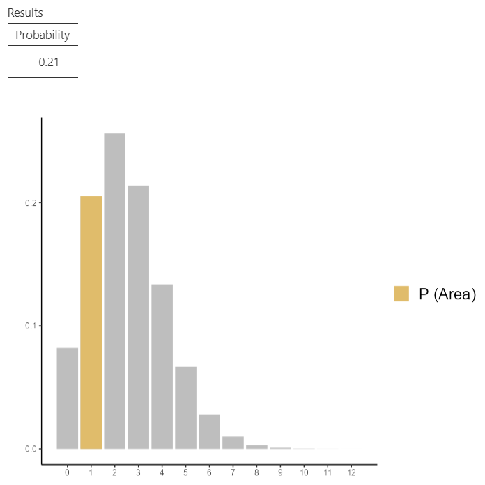 Check the Compute probability box, select \(P(x1≤ X ≤x2)\) and set x1 = 1 and x2 = 2, as shown below (Figure 13.18):