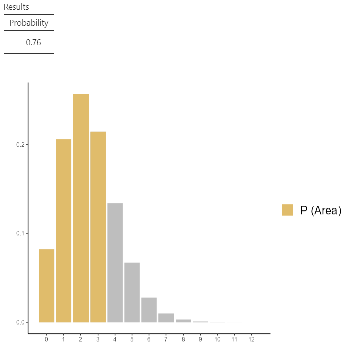 To answer this question select \(P(X ≤x1)\) and set x1 = 3 , as shown below (Figure 13.11):