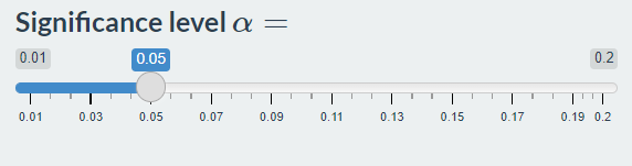 At the slider bar we keep the default value α=0.05 for the level of significance (Figure 15.4):