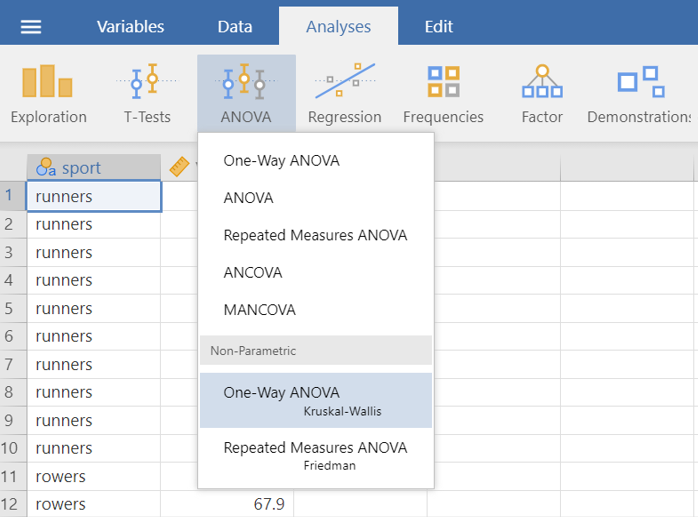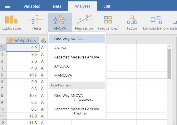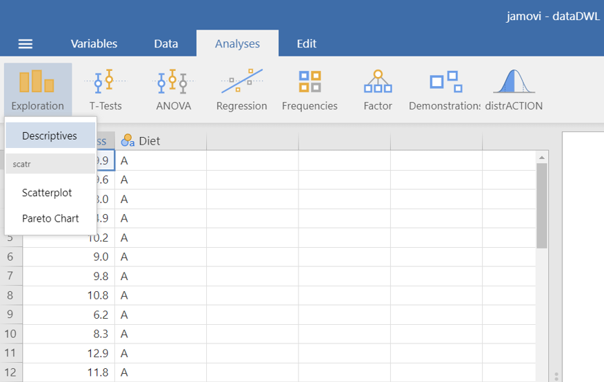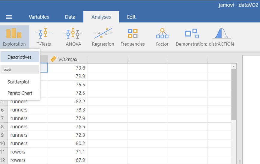 On the Jamovi top menu navigate to