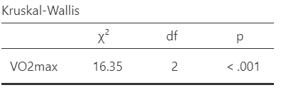 The results of the Kruskal-Wallis test are presented in the table of the Figure 17.22:
