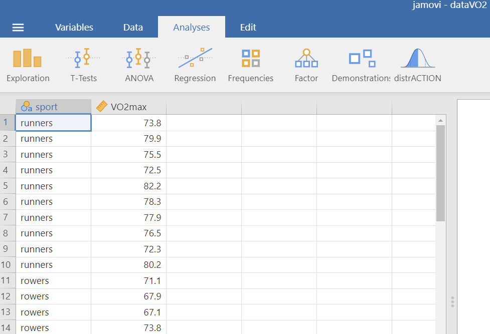 Open the dataset named “dataVO2” from the file tab in the menu: