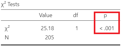 Additionally, as we observe in Figure 18.8 the assumption of chi-square test is fulfilled (all the expected counts are greater than 5; green cells).